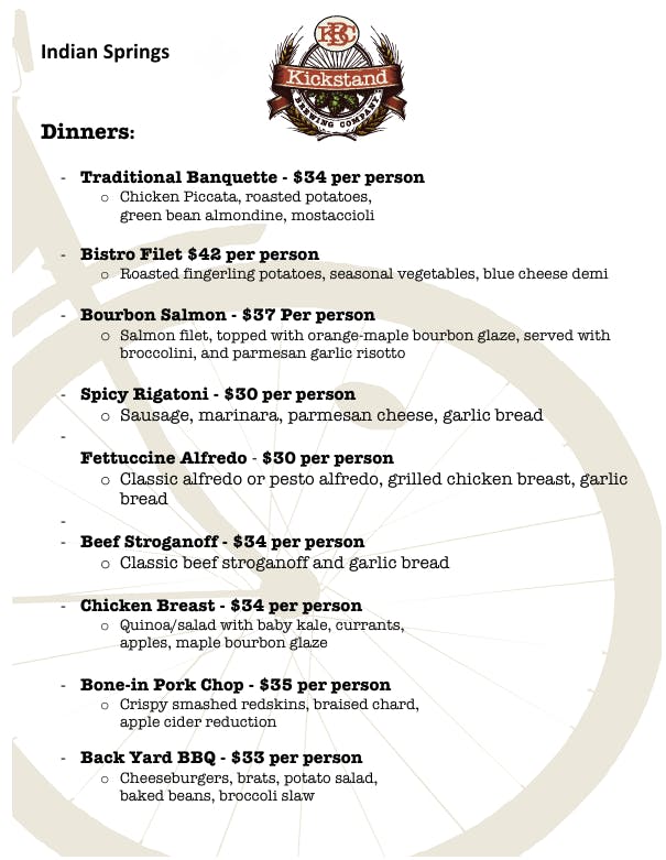 - Bourbon Salmon (includes broccolini & risotto) - $18.5/person